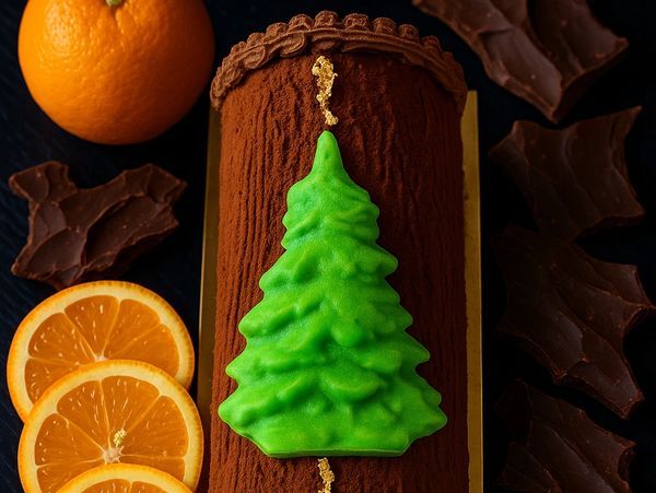 Savor the magic of the season with Aurora LA's extraordinary Chocolate Swiss Roll Christmas Buche! Delight your palate with the perfect blend of a light, fluffy chocolate Swiss roll, generously filled with indulgent chocolate ganache and the citrusy burst of fresh oranges.